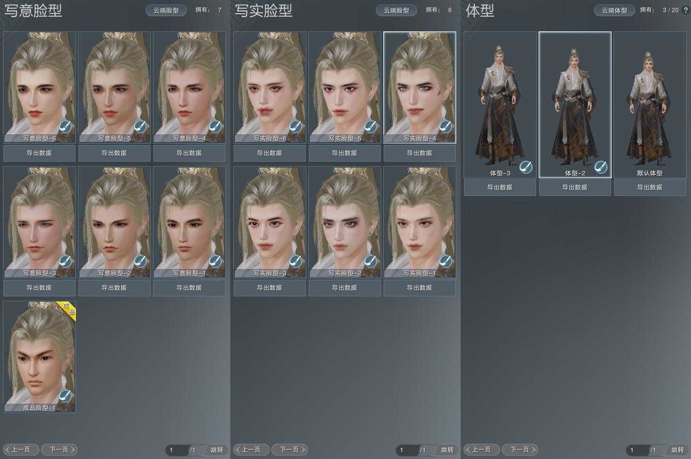 【捏脸】写意脸型7个,写实脸型6个,体型3个