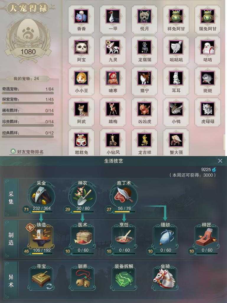 【同伴】沈剑心70级境界壹,沐晴柔69级境界壹,燕子娘58级境界壹,茸茸52级境界壹,年小熊1级境界壹,康宴别级,唐小珂级,温折枝级,年小鹿级,阮归云级,温辞秋级,阮闲舟级,李星云级,月嘉禾级,贺闲级,费大劲级,白鹊级,盖聂级,卫庄级,李逍遥级,赵灵儿级
