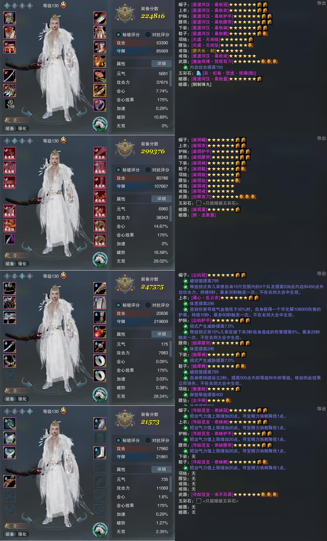 【装备】130级,装备一224816,装备二299376,装备三247575,装备四21573