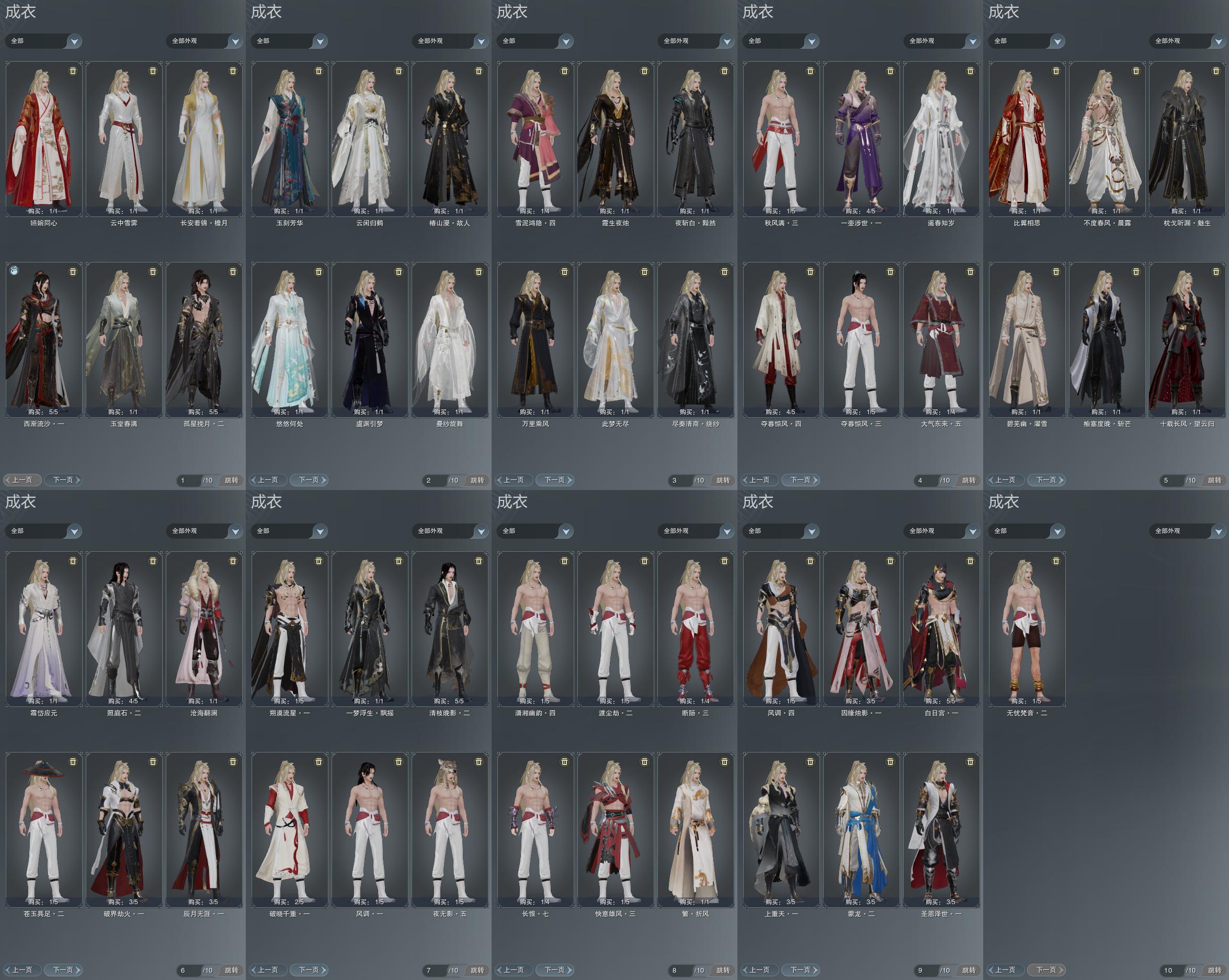 限时限量:[黄长安, 烟花套, 黑枕戈, 十三周年成衣, 十四周年工作服, 云闲归鹤]