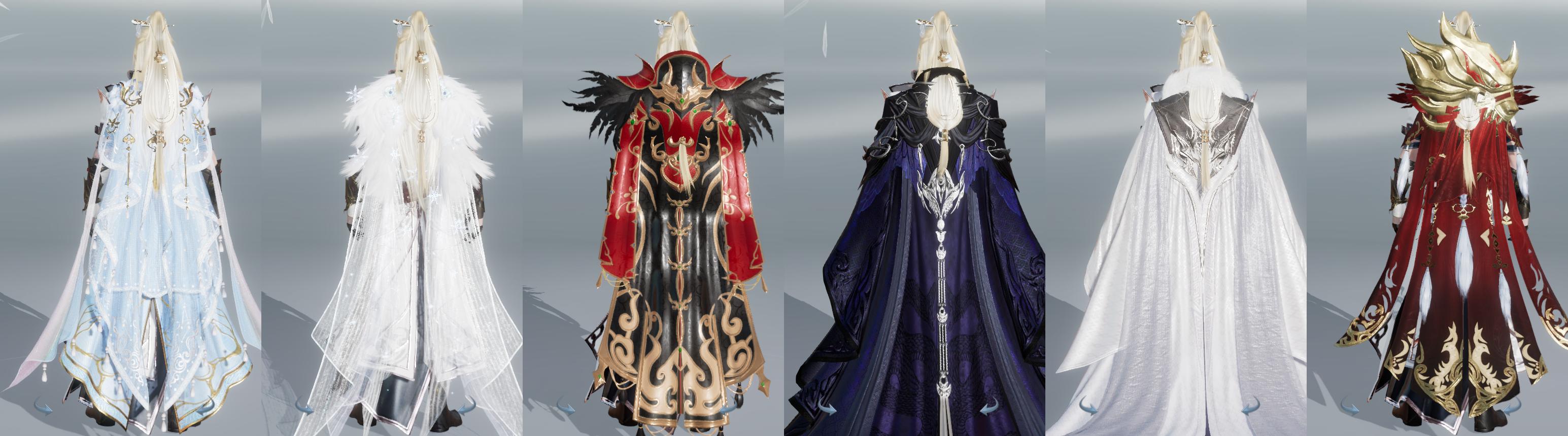 【披风】8个,[7W资历披风, 熔金烈风, 刀盒子披风, 毒盒子披风, 玉鸾雪, 二代战令披风]