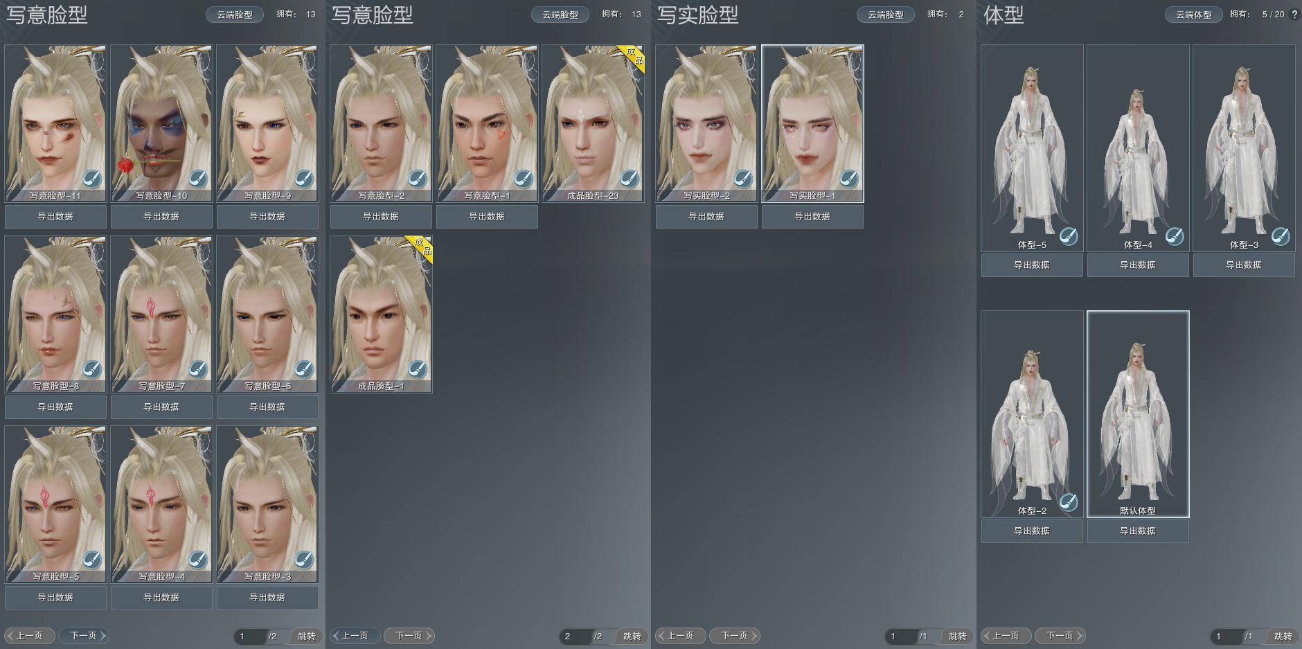 【捏脸】写意脸型13个,写实脸型2个,体型5个