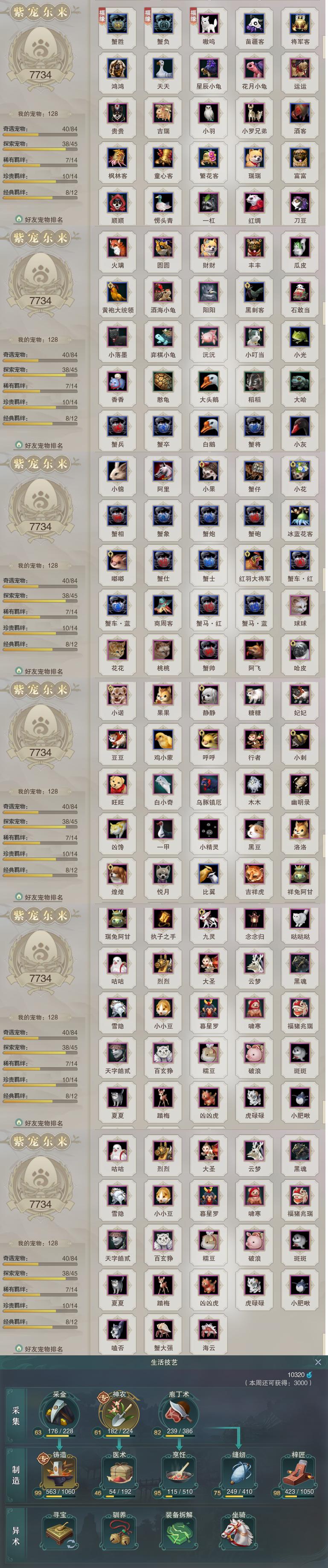【同伴】沈剑心79级境界壹,沐晴柔78级境界壹,唐小珂77级境界壹,温折枝1级境界壹,年小鹿1级境界壹,茸茸1级境界壹