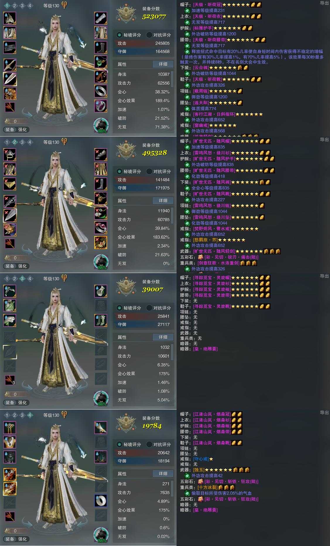 【装备】130级,山居剑意/问水诀PVE523077,山居剑意/问水诀PVP495328,装备三39007,装备四19784