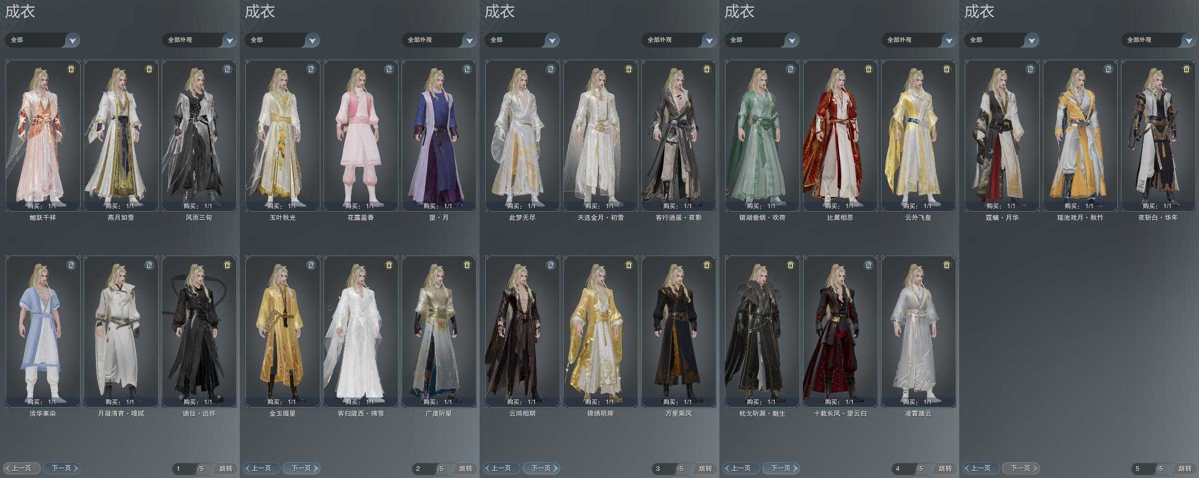 单盒成衣:[黑谪仙衣, 一代乘风衣, 蘑菇盒衣, 灯盒衣, 白陇西成衣, 燕月盒衣]