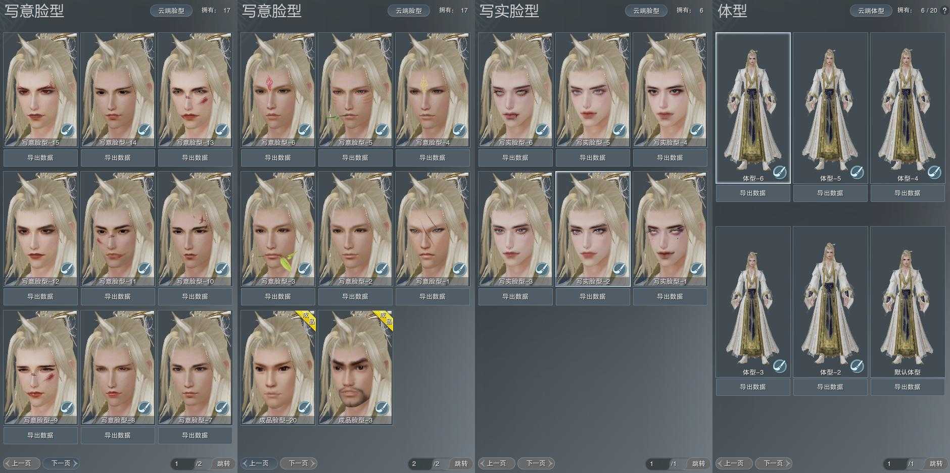 【捏脸】写意脸型17个,写实脸型6个,体型6个