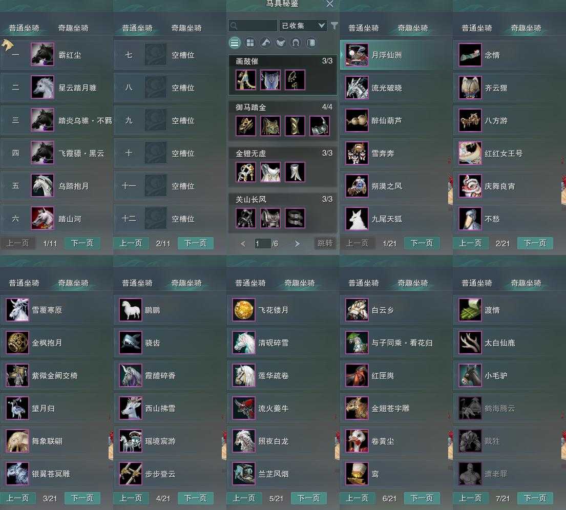 【坐骑】6个[踏炎不羁, 星云踏月骓, 飞霞骠黑云, 乌蹄抱月, 霸红尘]